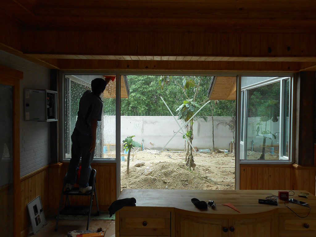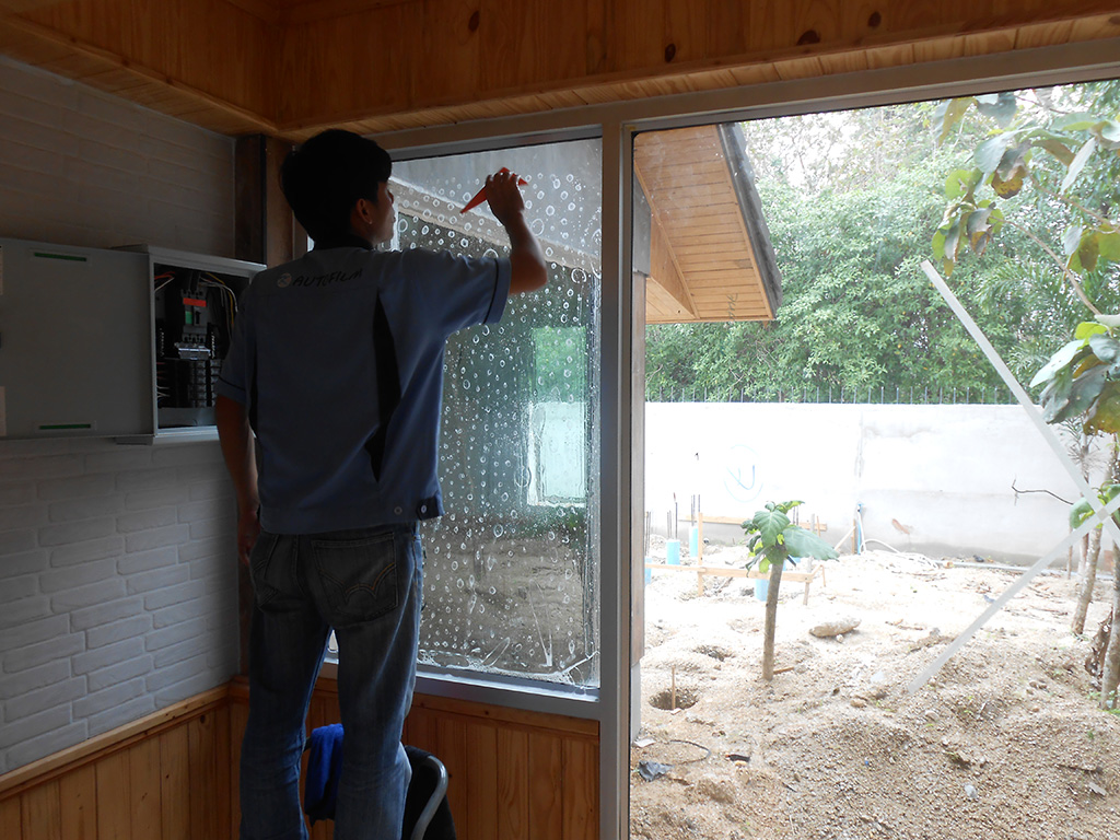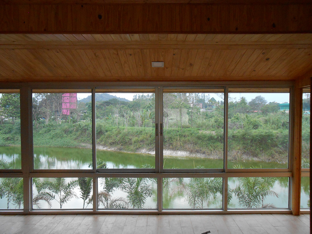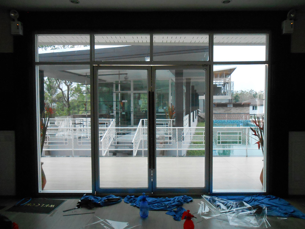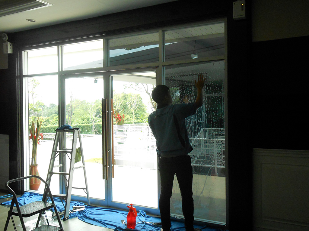 ที่ พริ้วลมชมน้ำ รีสอร์ท บ่อวิน ชลบุรี สร้างอาคารพักใหม่ มีกระจกบานใหญ่ภายในได้ติด Safety Film 4 Mil Clear เพื่อความปลอดภัยเมื่อกระจกแตก ฟิล์มนิรภัยจะยึดกระจกไม่ให้แตกกระจาย พร้อมกันนั้นยังได้ติดฟิล์มกรองแสงในส่วนที่รับแสงทางด้านหลัง ฟิล์มกรองแสงที่เลือกใช้เป็น MAXGUARD รุ่น STEEL35 ซึ่งมีคุณสมบัติการลดความร้อนได้ปานกลาง การมองออกเป็นธรรมชาติและไม่ทำให้ห้องพักมืดจนเกินไป และในส่วนของห้องประชุมได้ติดฟิล์มกรองแสง MAXGUARD รุ่น STEEL05 เพื่อลดแสงและลดความร้อน