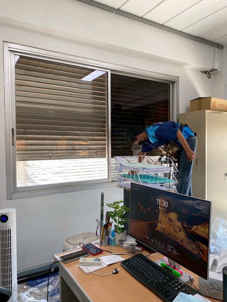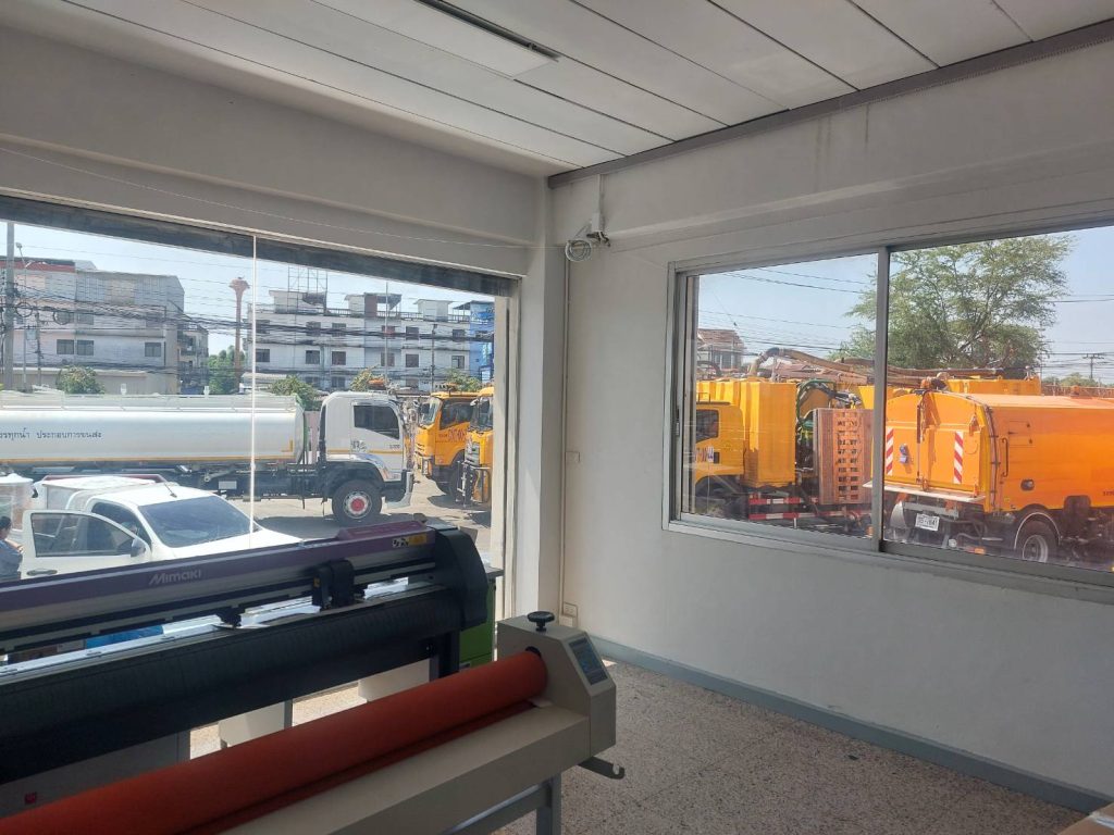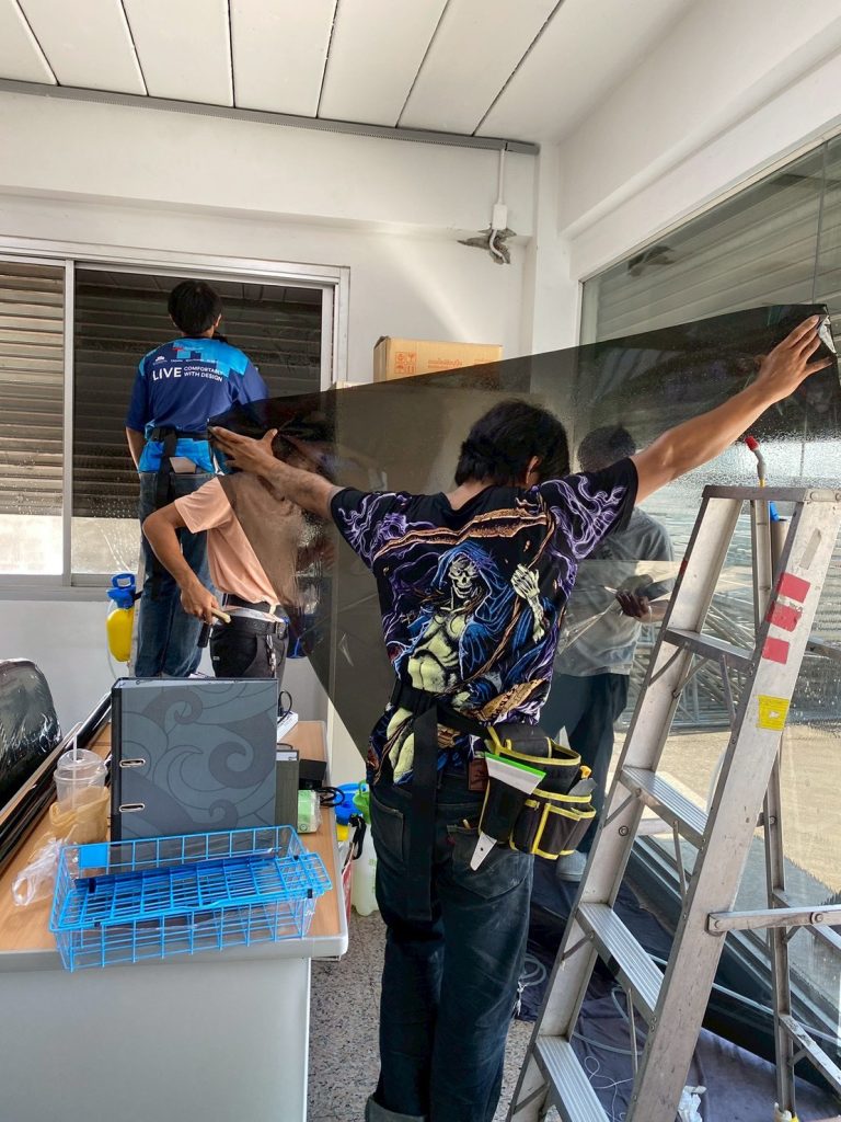 ออฟฟิศลูกค้า รีโนเวทใหม่ ด้านหน้าซึ่งเป็นห้องทำงานเป็นกระจกบานใหญ่ ทำให้แสงแดดและความร้อนเข้า พนักงานทำงานไม่สะดวก ทางผู้บริหารจึงต้องติดตั้งฟิล์มกรองแสง ฟิล์มกรองแสงที่เลือกใช้เป็นรุ่น MAXGUARD NM10 UHD ด้วยเทคโนโลยี Sputtering Nano Magnetron ULTRA HD ทำให้เมื่อติดตั้งแล้วสามารถลดแสง ลดความร้อนได้ดี มีทัศนวิสัยการมองออกชัดเจน ฟิล์มกรองแสงจะออกโทนสีชา มีเงาสะท้อนปานกลาง ติดตั้งแล้วมีความเป็นส่วนตัว ทำให้อาคารดูสวยงามอีกด้วย